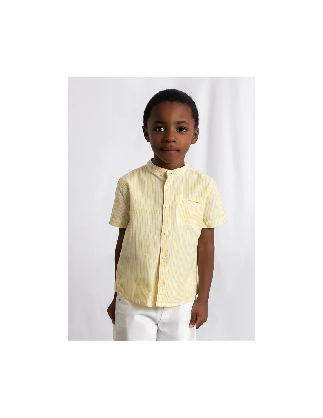 Camisa m/c cuello mao lino - Oliva