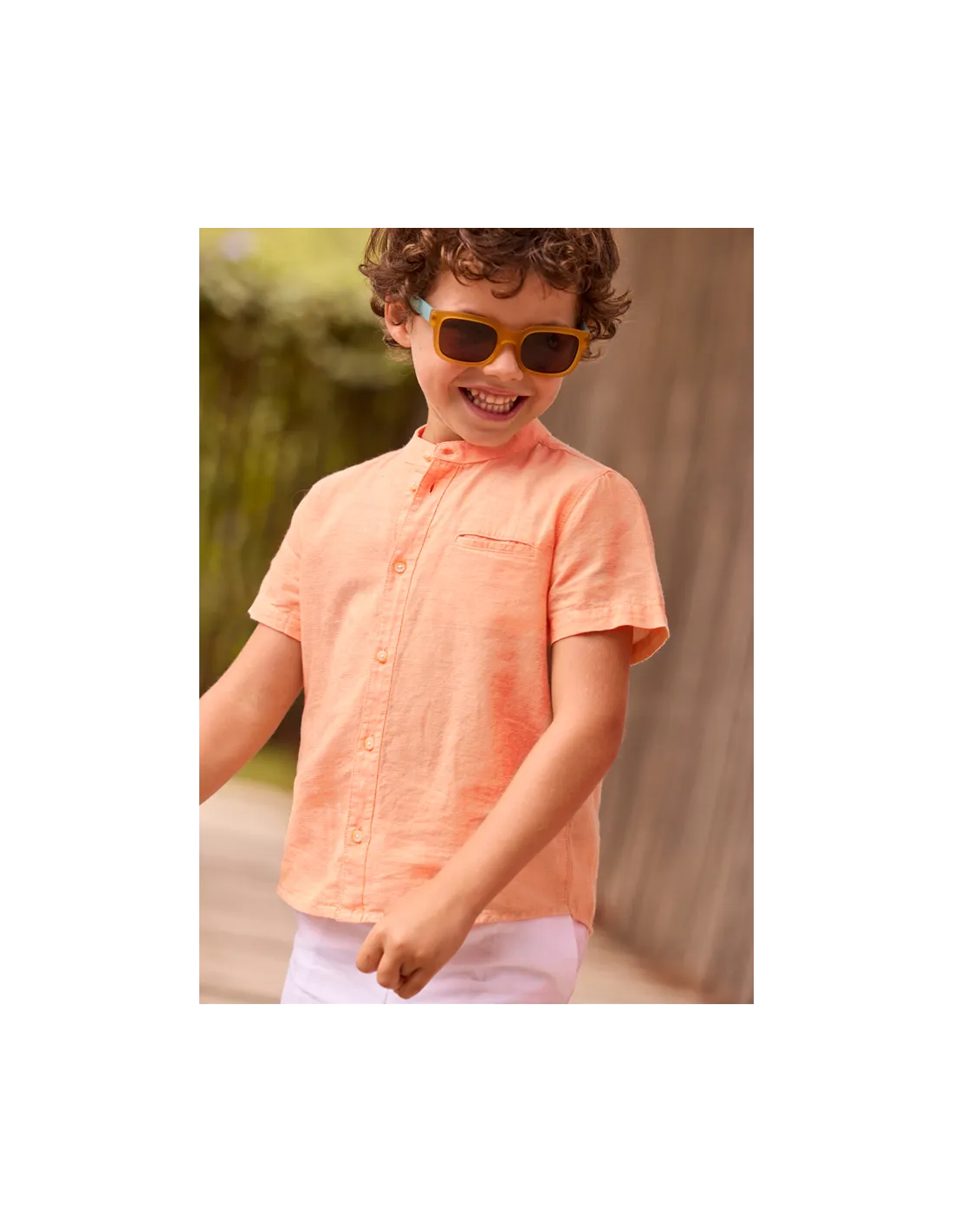 Camisa m/c cuello mao lino - Peach