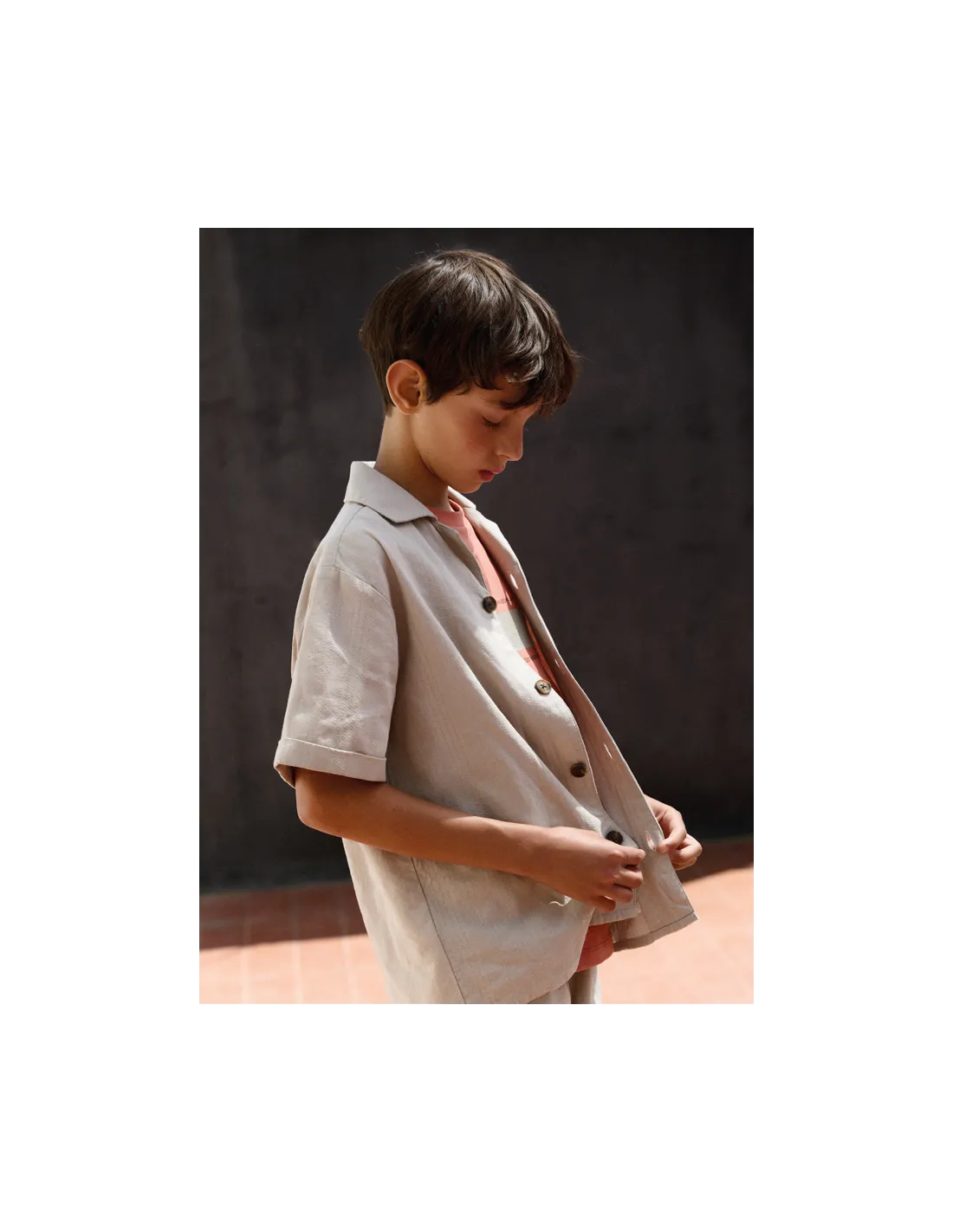 Camisa m/c cuello resort - Piedra