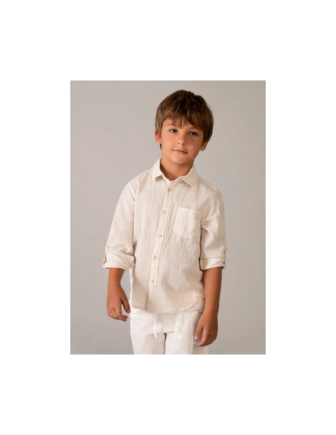Camisa m/l lino c/camisero - Avena mez