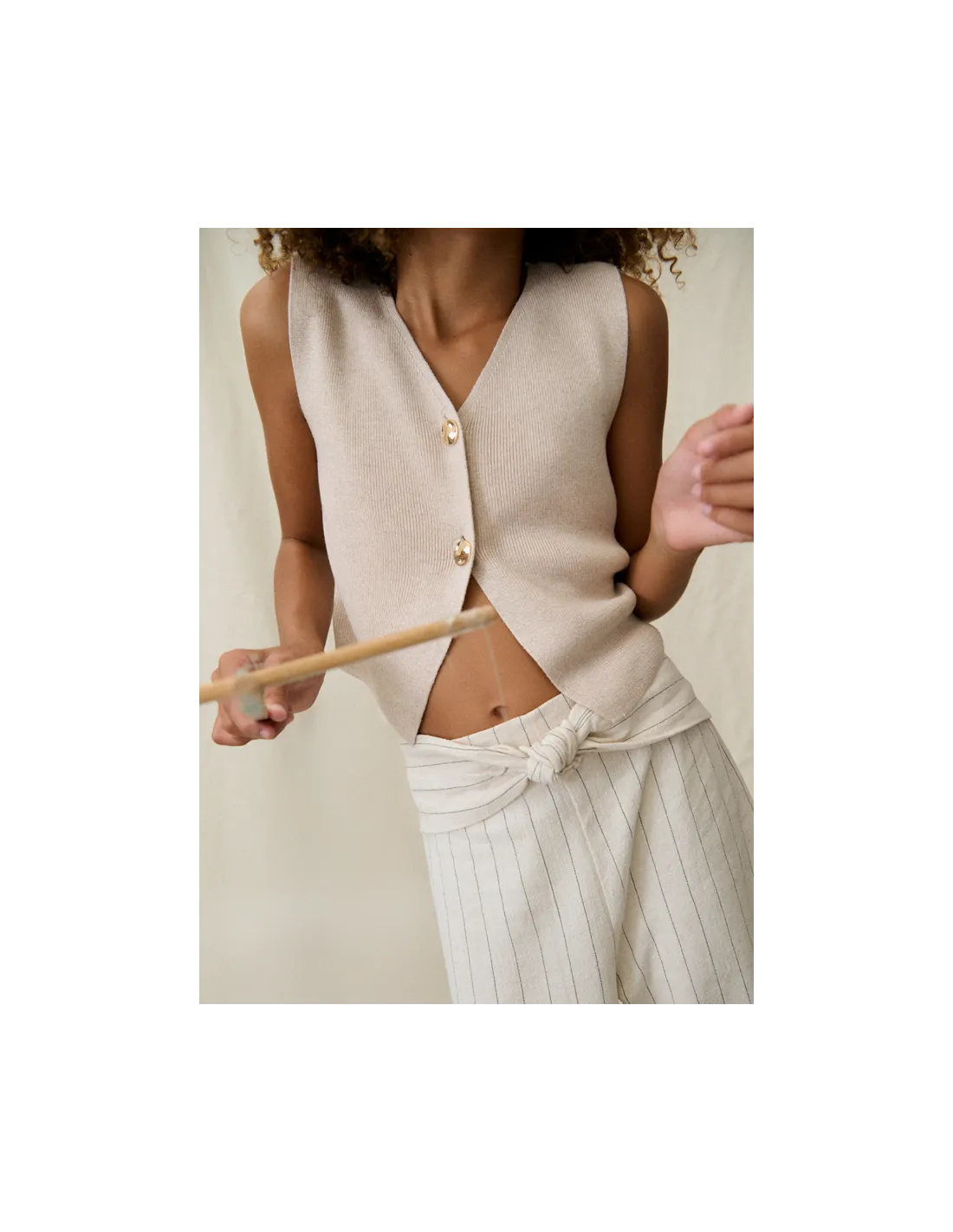 Top tricot botones - Almendra m