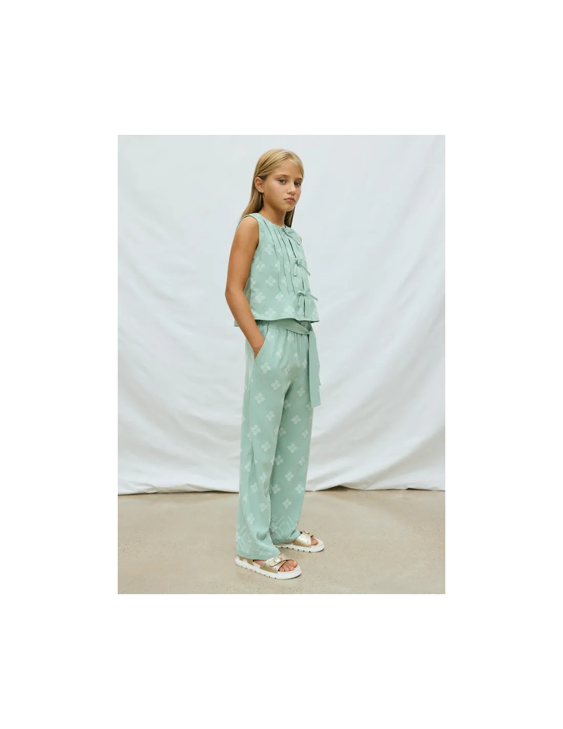 Pantalon largo estampado - Salvia