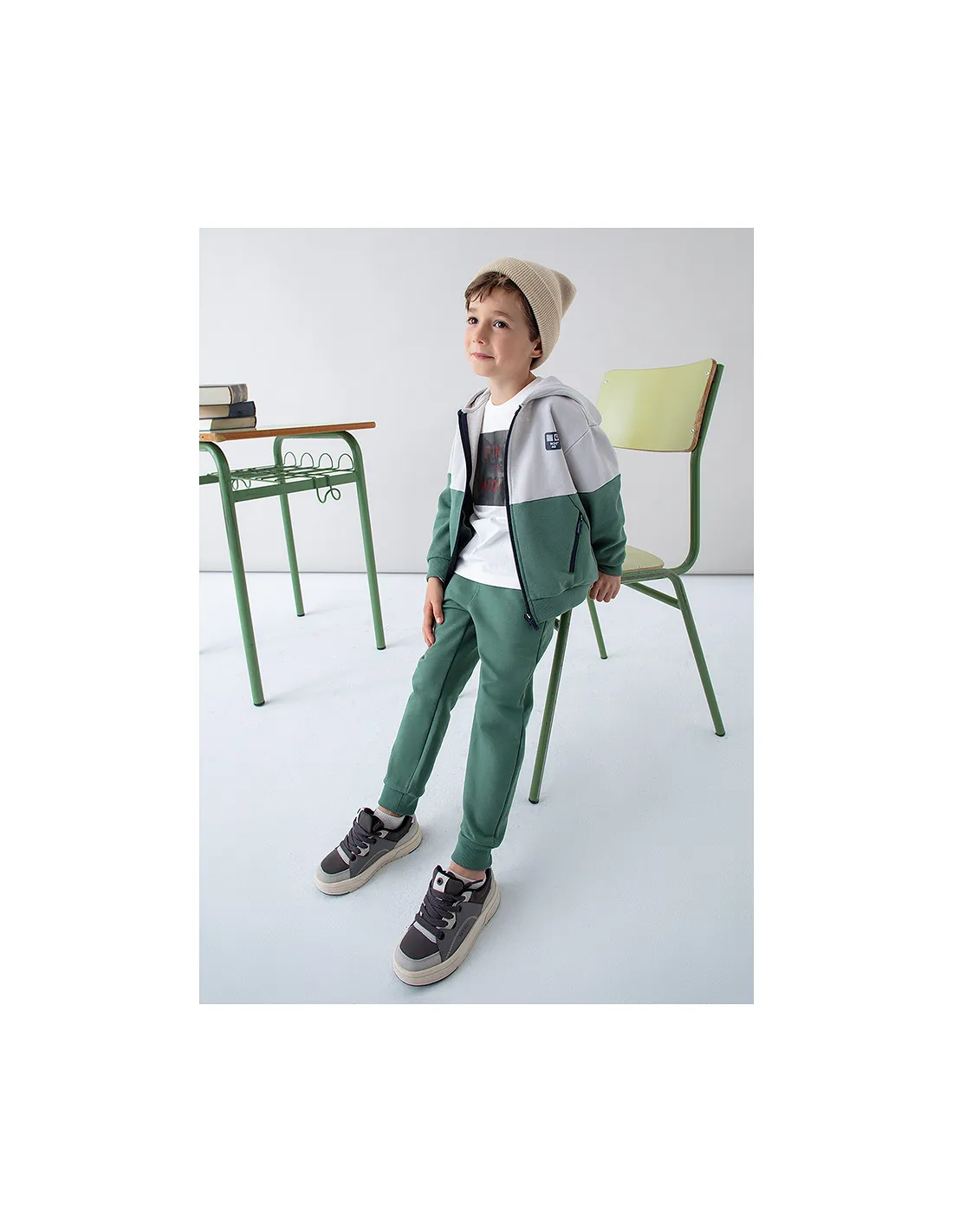 Pantalon felpa basico puños - Abeto