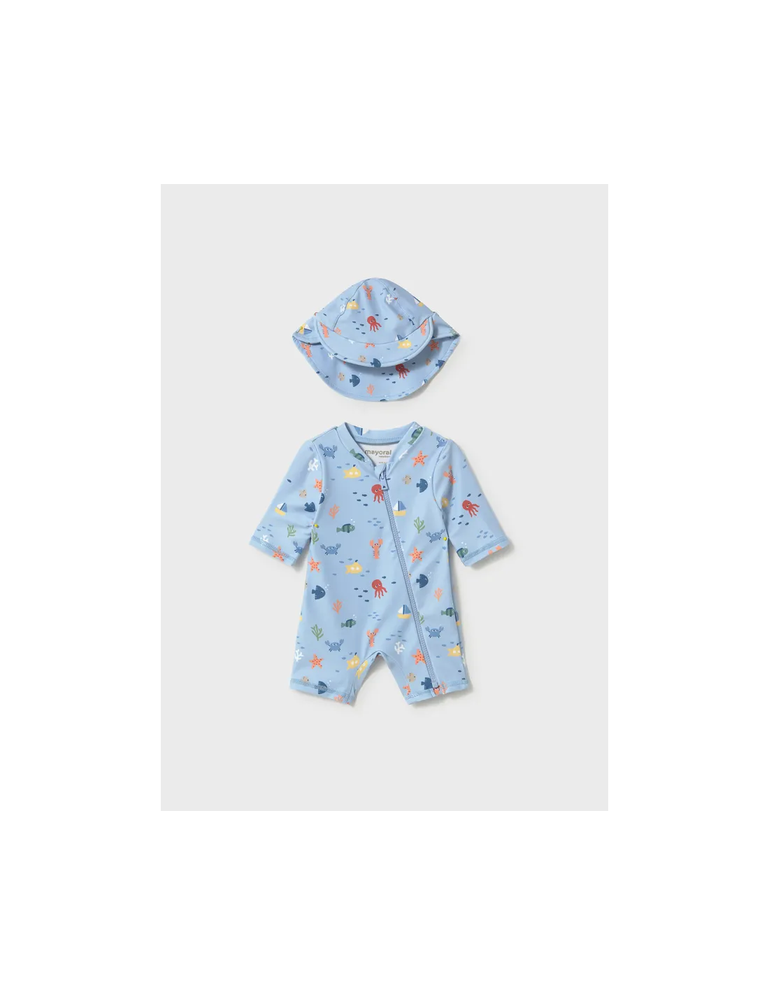 Conj. baño pelele con gorro - Azul